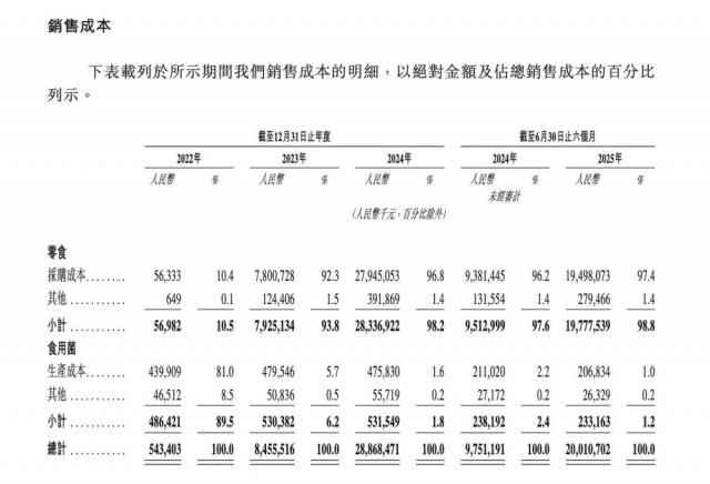这也导致量贩零食行业的成本居高不下。招股书显示,万辰集团过去两年的零食采购成本占到公司整体销售成本的 97% 左右,毛利率维持在 10% 左右的低位;鸣鸣很忙去年商品销售收入虽然创下 392 亿元的新高,但销售成本同样高达 363 亿元,过去三年毛利率维持在 7.5% 左右。